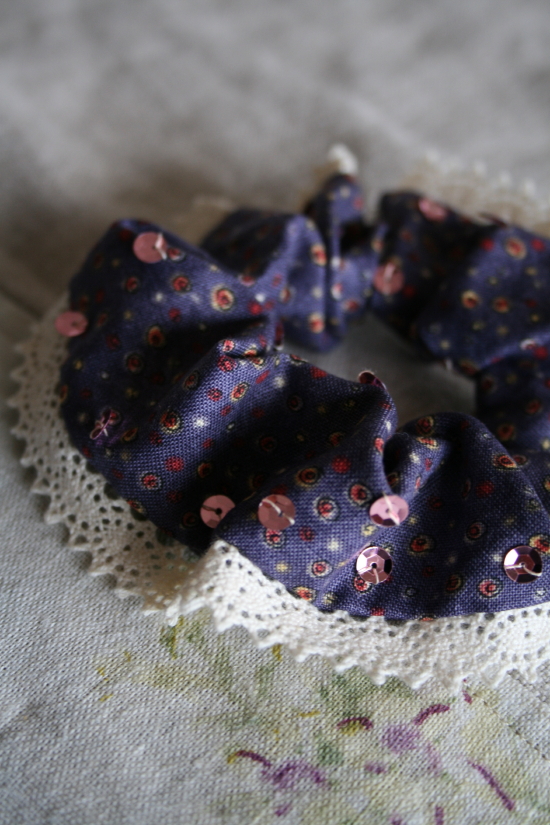 髪に結んで嬉しそうに鏡の前に立つ娘の後ろ姿。