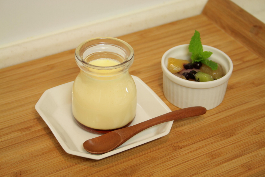 次は…ほっこりおやつ代表、「手作りとろとろプリンとマチェドニア」