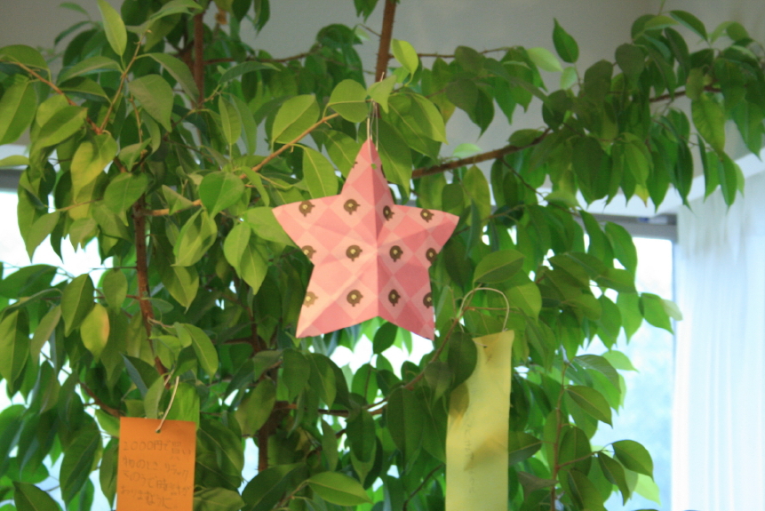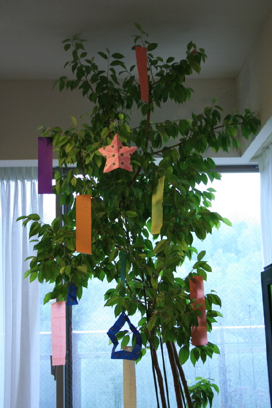 ここ数年、七夕シーズンには室内の観葉植物はこんなにされてしまいます…(笑)