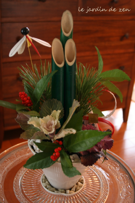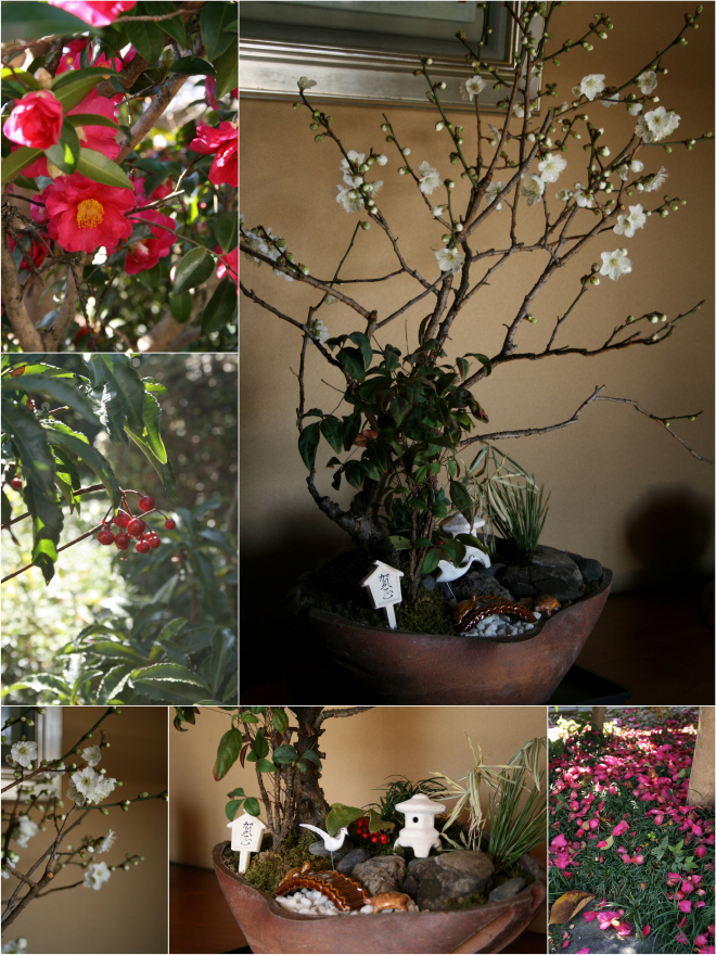 梅を中心に竹、松、南天、万両。