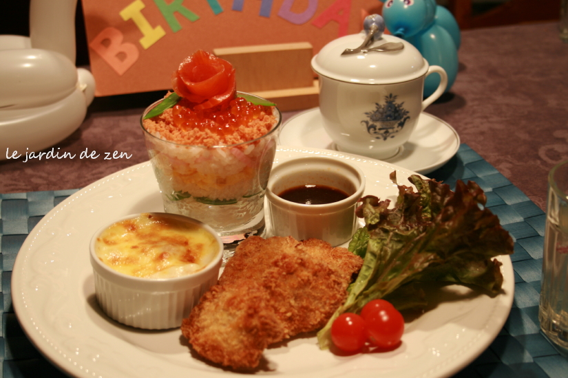 夕食を、そしておうちで誕生日ケーキでのお祝いをし、