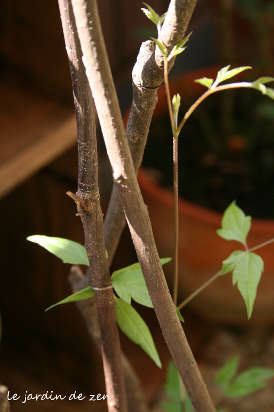 ベランダのパット・オースチンがたくさん花をつけて、