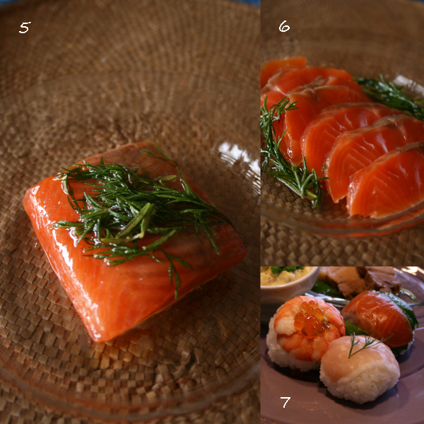 うす切りにして洋風手まり寿司の種に (写真6.7)